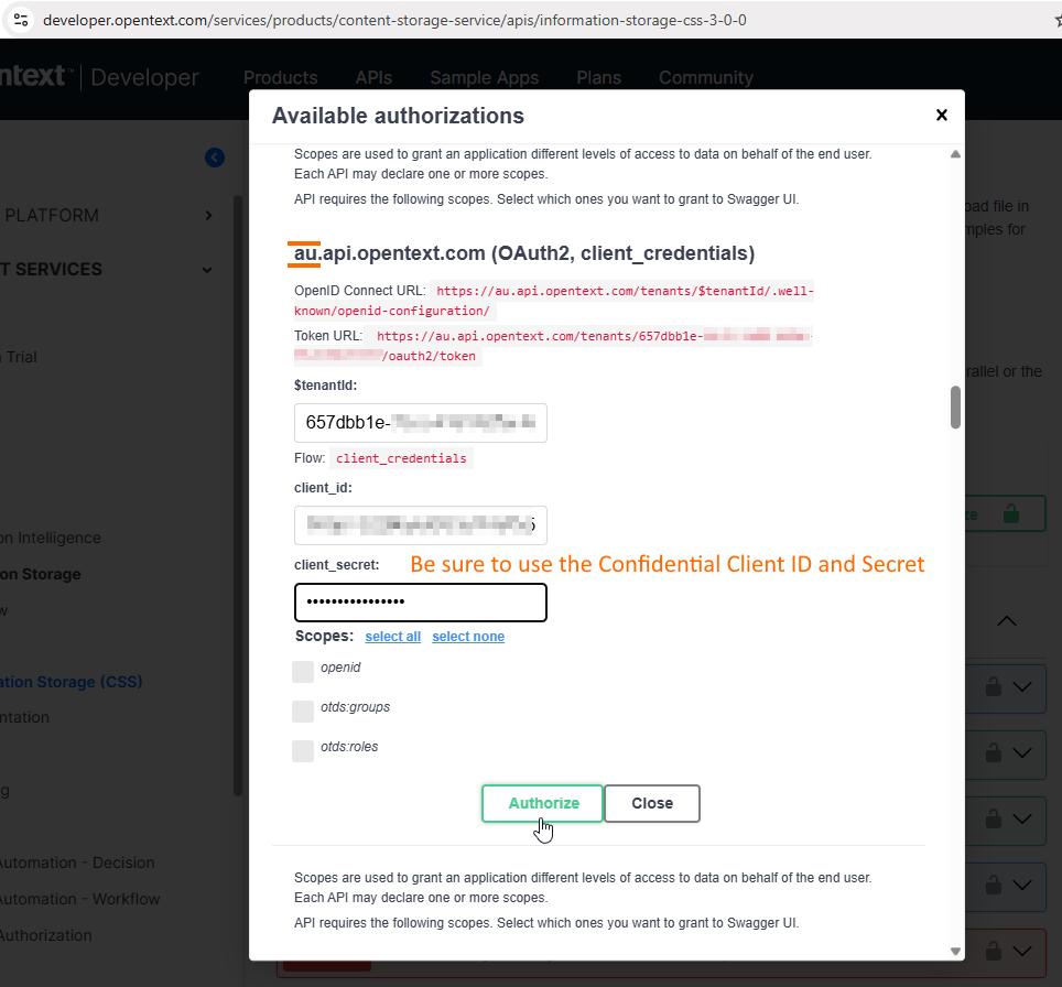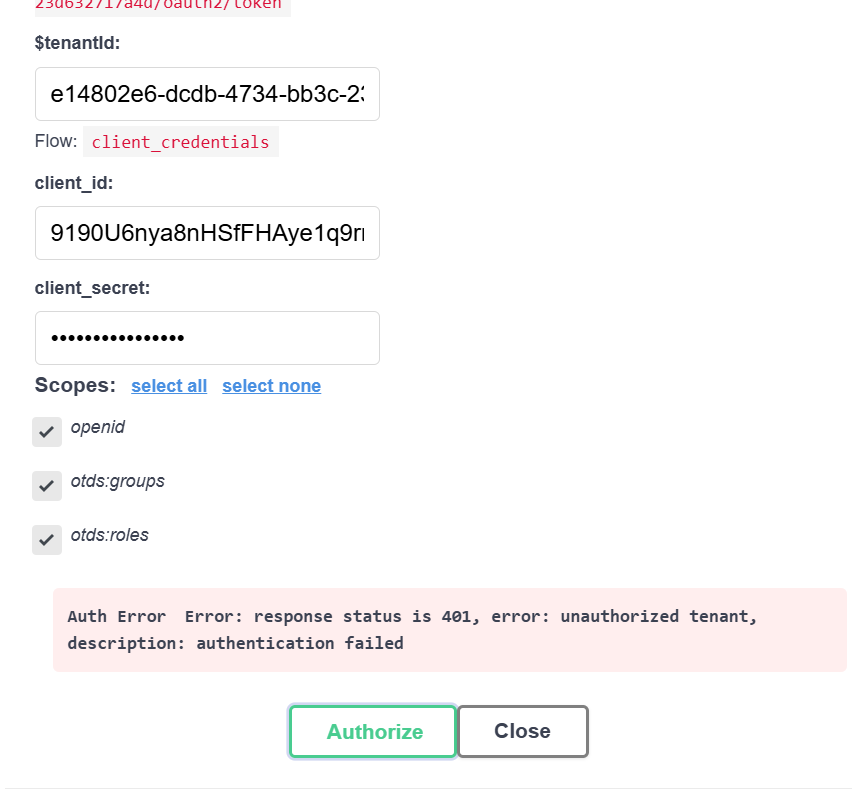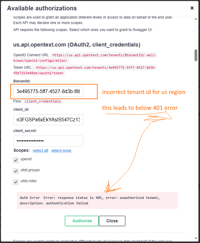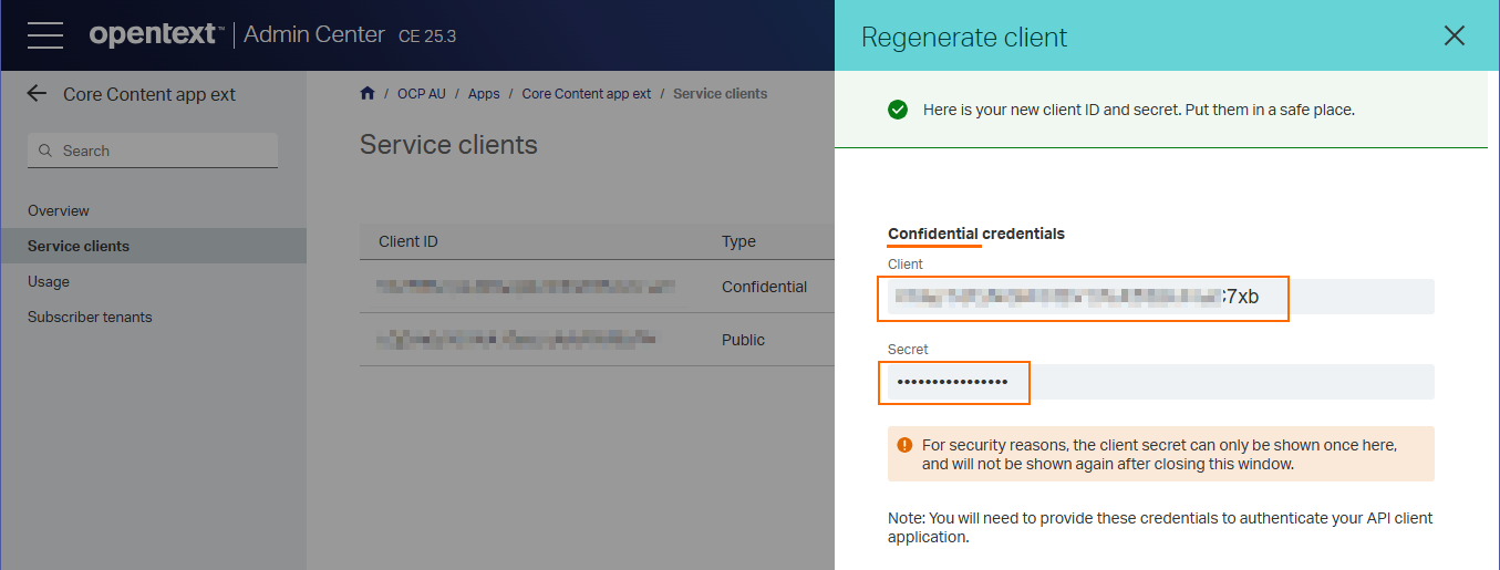 also extended the same core content app and got the client id and client secret, still facing same issue.